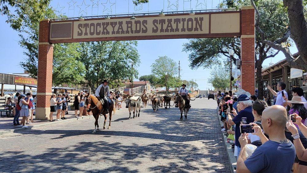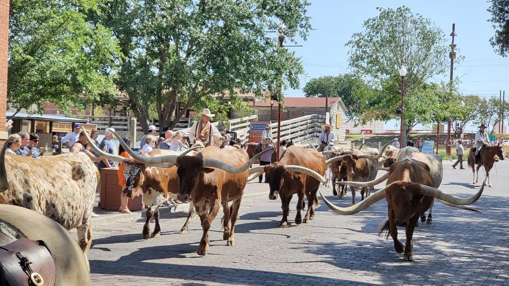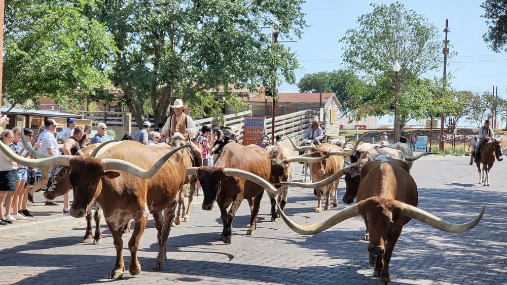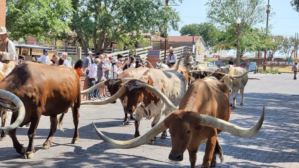 Nachdem wir den sogenannten „Longhorn Drive“ wegen übermäßiger Hitze gestern nicht miterleben konnten, wollten wir das Spektakel heute um 11:30 Uhr nicht verpassen.