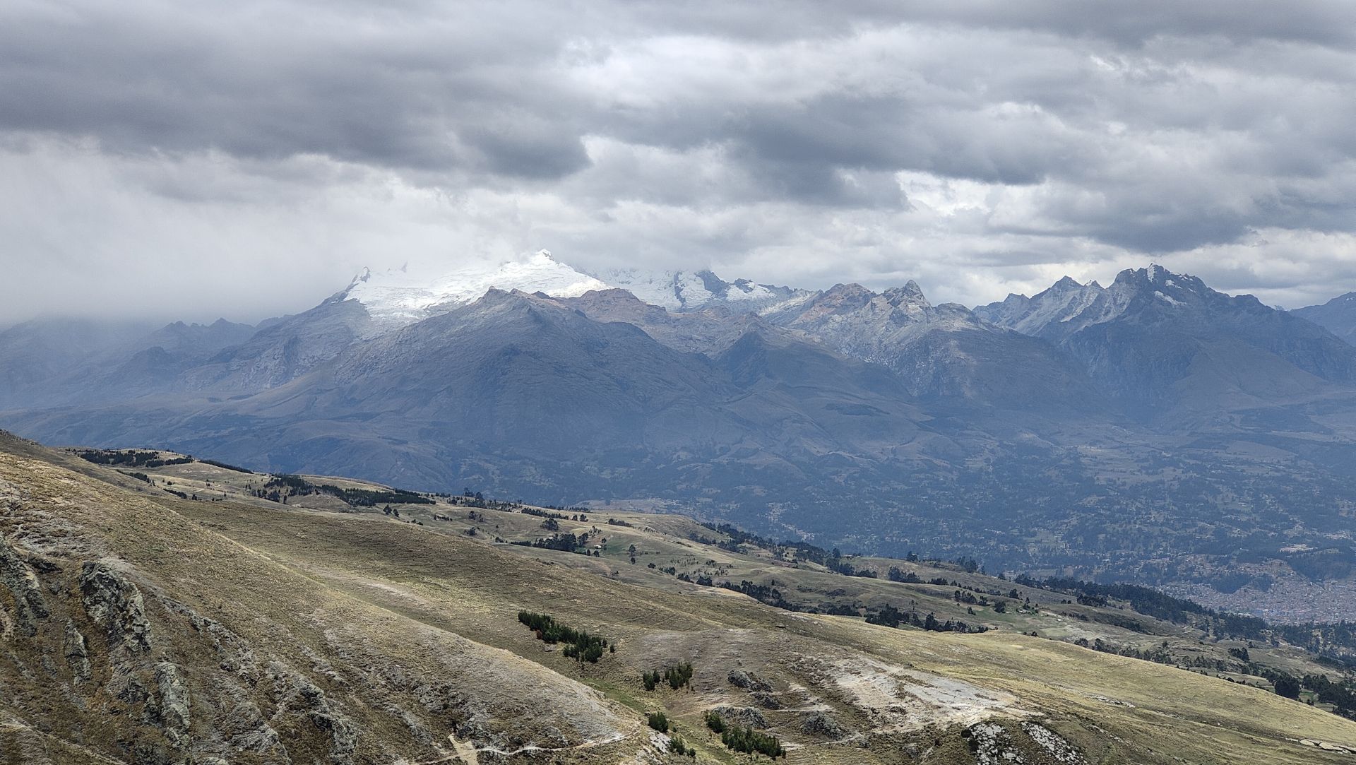 Dann ging es auf die 14N nach Osten in die Cordillera Negra. Die schwarzen Berge sind alle so um die 5000m hoch. Und da wollte (sollte) ich nun durch. Die Policia hat mich nämlich wegen meiner verlorenen Zollpapiere für mein Pferd genau dort hingeschickt. - War aber sowieso auf meiner geplanten Route, denn Huaraz ist das Eingangstor für viele Wanderer aus der ganzen Welt um in die Cordillera Blanca zu gelangen. Diese Bergkette hat Gipfelhöhen um die 6000m !